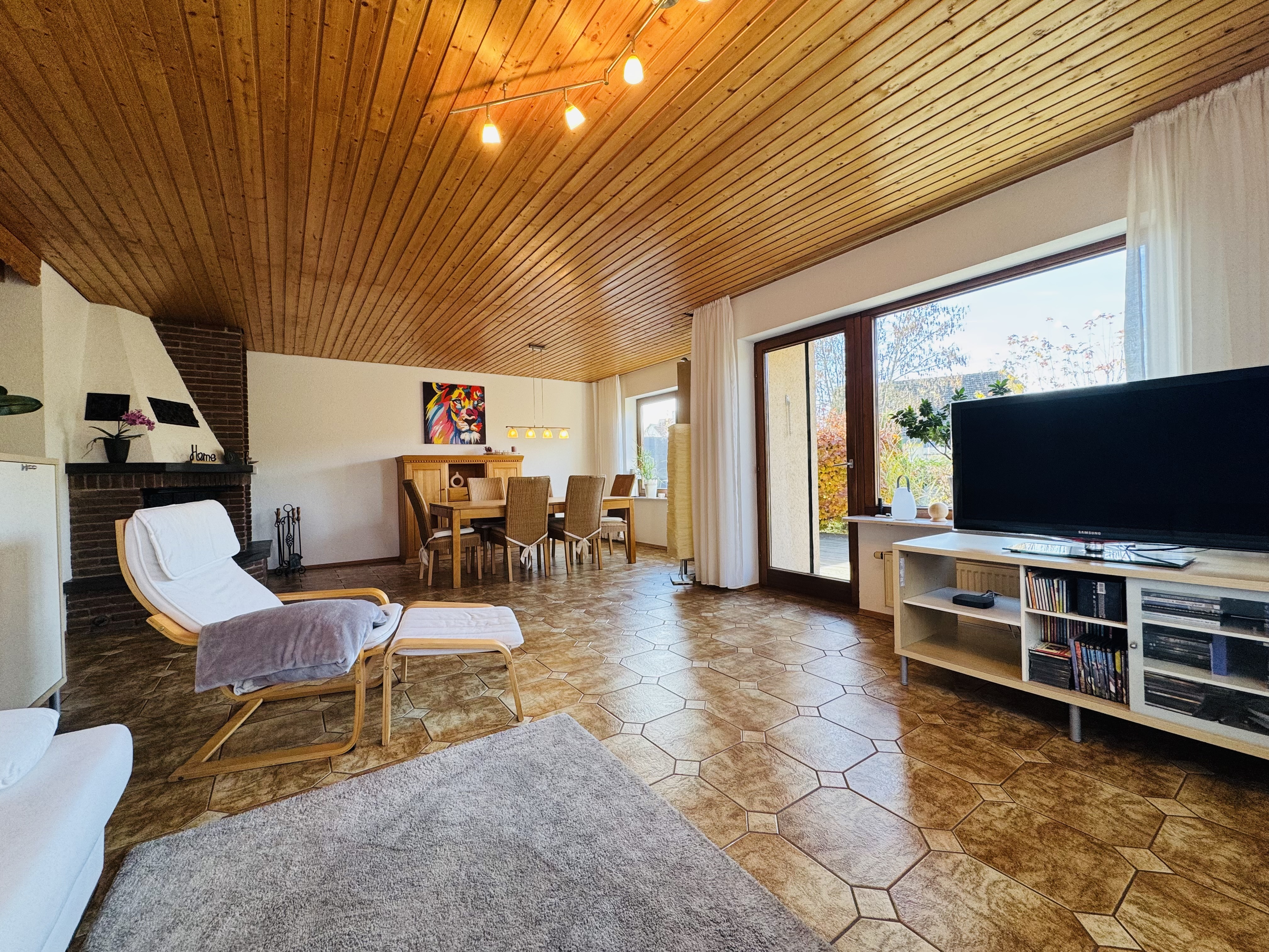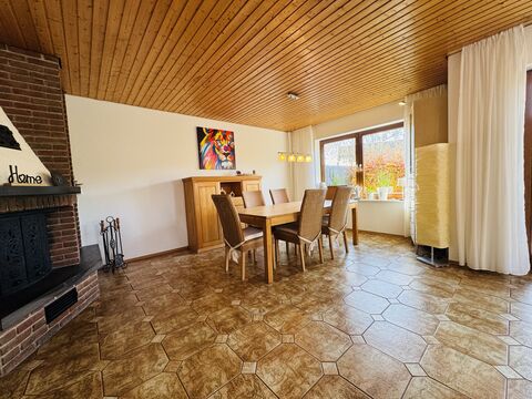 - Ol-Heizung und zusatzlicher Holzofen im Wohnzimmer fur effiziente Warme
