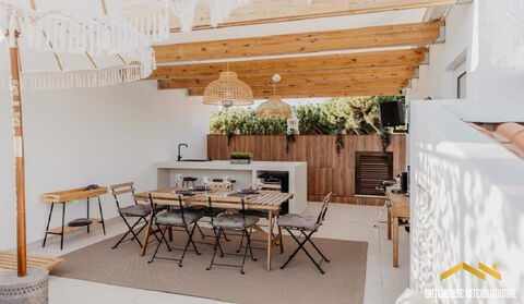 This 85 m2 second and top-floor apartment features an entrance hall, an open-plan living room with dining space and fitted kitchen with Bosch appliances and breakfast bar, two bedrooms, two bathrooms (one en-suite), spacious rooftop terrace with barbecue, sink, dining area, and lounge space, communal swimming pool, parking are and gardens. Layout Entrance hall Open-plan living and dining area with covered terrace and valley and distant sea views Modern fitted kitchen with Bosch appliances, breakfast bar Two bedrooms and two bathrooms Outside Shared swimming pool Roof terrace, Al Fresco dining space BBQ zones Communal gardens and parking Location Located just 5 minutes from Vilamoura Marina, golf courses, and golden sandy beaches. At a glance Penthouse 85 m2 build Two bedrooms, two bathrooms Roof terrace, Al fresco dining, BBQ * Communal gardens and parking