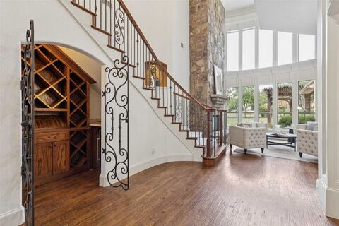 Nestled on a generously sized lot in the highly sought-after Wildwood neighborhood, this stunning 5-bedroom, 5-bathroom home offers the perfect blend of luxury, comfort, and thoughtful design. The circle drive greets you and guides you in to the beautiful double door entry. Step inside to discover wood floors stretching through the abundance of natural light streaming through large windows that showcase the homes warm and inviting atmosphere. Continue on through the butler's pantry to the beautifully updated kitchen featuring exquisite Taj Mahal quartzite countertops and seamless backsplash, stainless steel appliances, double ovens, pot-filler and overlooks the spacious family room with a cozy gas log fireplaceperfect for entertaining or relaxing. This layout is ideal, with two bedrooms on the first floor, including a serene primary suite that overlooks the sparkling pool and boasts a custom-designed closet system and spa-like bathroom. Upstairs, you'll find three additional ensuite