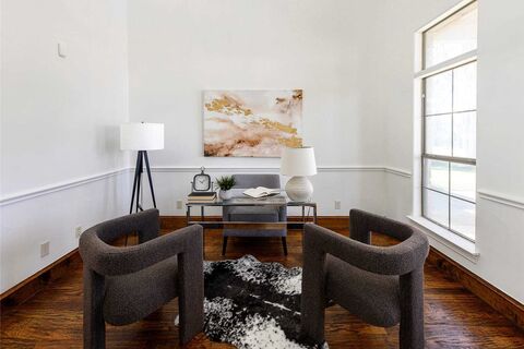 Impressive updated newer construction, open floor plan, downstairs luxurious owners suite, attached two car garage with a generously sized yard near West Highland Park. Freshly painted, replaced systems, pretty hardwood floors, recessed lights, vaulted ceilings & picture windows are throughout. This quality home also features a downstairs office with an upstairs flex space for the additional two bedrooms and shared bath. Fresh backyard grass was recently installed. One could incorporate a party pool or screened-in porch. Around to the back might feature raised beds for garden hobbies.This lovely updated home has the intrinsic qualities of custom construction. The optimal location is near restaurants, services, the Tollway plus quick access to Dallas Love Field Airport. An excellent quality of life.