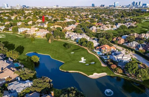 Located in the prestigious, guard-gated golf course community of Stonebriar Village, this stunningly updated, single-story, custom home offers 3,500 square feet of move-in ready, low-maintenance luxury on an oversized, elevated corner lot with mature trees and established landscaping. Custom, iron doors open to light-filled interiors tastefully refreshed with soothing designer paint palette, real hardwood floors, refined millwork (they dont make them like they used to), designer lighting and a flexible, spacious floor plan. Walls of floor-to-ceiling windows bathe the open-concept layout in natural light. The remodeled gourmet kitchen is both elegant and functional, featuring marble countertops, designer backsplash, crisp white cabinetry, and premium LG Signature Series stainless steel refrigerator, ovens, microwave, wine chiller, induction cooktop and dishwasher. The kitchen flows effortlessly into the inviting living room with fireplace and a bright breakfast nook. The private primar