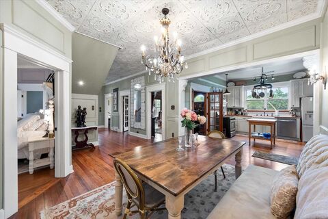 Step into this beautifully maintained farmhouse that perfectly combines timeless charm with modern comfort! Nestled on approximately 57 acres, this 3-bedroom, 2.5-bath home features gorgeous hardwood floors throughout, showcasing its enduring character. Spacious living areas offer a warm balance of coziness and functionality, while the elegant dining room is ideal for entertaining family and friends. The walk-in pantry adds extra convenience, and the stylish lighting throughout creates a welcoming, inviting ambiance. Two bathrooms feature classic clawfoot tubs, adding a touch of vintage luxury to your daily routine. Relax on the covered front porch, take a dip in the sparkling in-ground pool, and enjoy the serene countryside views. The property is fenced and cross-fenced, with mature native pecan and walnut trees, plus two tanks and wooded areasperfect for recreation, privacy, and exploring the outdoors. This would also be an excellent opportunity for an unforgettable airbnb or weddin