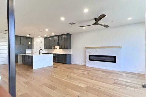 Dont miss this exceptional opportunity to own a sophisticated three-story townhome perfectly positioned on the waterfront with panoramic views of the Fort Worth skyline and the Trinity River. This elegant residence offers 4 spacious bedrooms, 4.5 luxurious baths, and an open-concept floor plan filled with radiant natural light that enhances the modern, airy ambiance throughout. Contemporary finishes and thoughtful design details elevate every room. The living area features a striking color-changing fireplace, creating the perfect atmosphere for both relaxation and entertaining. The expansive owners suite also offers breathtaking viewsideal for morning coffee on the covered balcony or evening stargazing. Additional highlights include a short walk to Top Golf, a brewery, e-bike and Trinity Trails, Wi-Fi capability for secure Amazon deliveries, a tankless water heater, and individual high-efficiency HVAC systems on each floor to maximize comfort and energy savings. Elevator-ready with