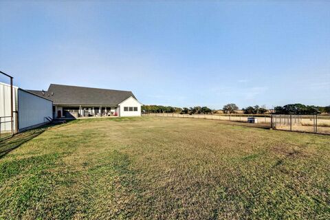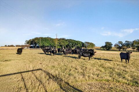 Welcome to the perfect blend of ranching, recreation, and refined country living. Spanning 180 plus or minus acres, with the possibility of additional acreage, this fenced and cross-fenced property is ideal for cattle, horses, hunting, or a peaceful Texas retreat. A multipurpose livestock barn features three Priefert horse stalls, a tack room, large tool room, and ample space for equipment. An arena with cattle chutes completes the setup for working horses and livestock.The land offers a beautiful mix of native and coastal pastures, open grazing areas, and mature oak clusters that create excellent wildlife habitat. Multiple stocked ponds provide water for cattle and attract whitetail, duck, and wild hogs. Toward the back, the terrain drops into a dry creek, adding scenic character.At the heart of the ranch is a custom-built 3-bedroom, 3-bath farmhouse with an open floorplan and rustic accents. Tongue-and-groove beamed ceilings and an impressive stone fireplace highlight the living