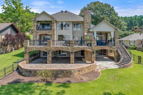 This stunning 3,850 sq. ft. home is beautifully situated on a half-acre lot along the shores of Lake Palestine. Offering 4 bedrooms and 3.5 baths, this property is designed for both comfort and entertainment. The home features a massive two-level outdoor entertaining space with a see-through fireplace enjoyed from both levels, perfect for gathering year-round. The private third-floor primary suite includes a spacious ensuite and its own balcony with sweeping lake views. Out on the water, the property boasts a fully equipped boat dock with a covered boat lift, double jet ski lift, and a shaded patio area for lakeside relaxation. Recent updates include a new roof 2023, replaced entire entertaining deck on main level 2023, ensuring peace of mind and long-term enjoyment. Replaced seawall 2022, Three HVAC units one replaced in 2022, new water heater 2025. This is truly a one-of-a-kind property and an absolute MUST SEE for anyone seeking luxury lakeside living on Lake Palestine.