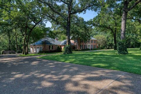 This stunning five bedroom, four full, plus 3 half bath Georgian-style estate offers over three acres of private, wooded oasis which combines convenience with tranquility perfectly located on Wilder Way in South Tyler, The home itself boasts over 6,300 square feet. It features three distinct living areas, two dining areas, a dedicated office, and a comfortable guest suite, plus additional flexible space. The formal living room is highlighted by beautiful wood flooring, built-in shelving, a lovely fireplace, and a wall of double French doors that showcase an amazing view. The elegant dining room is spacious and perfect for gatherings. The kitchen and adjoining hearth room are truly a dream, featuring brick floors, an abundance of solid cherry cabinets, a large center island, granite countertops, double ovens, a 6-burner gas cooktop, a panel-ready refrigerator, a warming drawer, and a custom wood and copper hood vent. The cozy hearth room includes wood beams, a corner fireplace, a buil