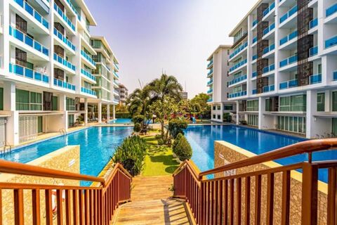 This condominium is located in Khao Takiab area, only 5 minutes from Bluport Shopping Centre, Vana Nava Jungle Water Park and Hua Hin City Centre. Cicada Market, many local restaurants and shops are close by. This unit features an open plan living, dining and kitchen area, 2 bedrooms with en-suite bathrooms and is 102.81 sqm in size. The unit is being sold fully furnished and the complex has several swimming pools, 24h security, fitness room, restaurant and is only 250m to the beach. Please contact us to arrange a viewing!