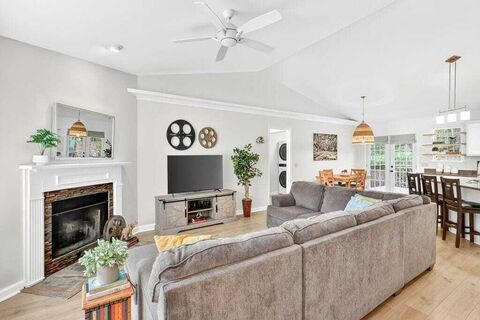 A rare find3/2 plus 2/1 yep, two homes in one! The main level offers three bedrooms and two full baths, while the finished terrace apartment adds two more bedrooms and a full bathperfect for multi-generational living or rental income, with no rental restrictions. The terrace level has its own private entrance, full kitchen, living and dining area, washer/dryer, and a spacious pantry or storage room. The current owners leased and hosted 30+ day short-term rentals. Inside, the open floor plan features NEW floors on both levels, vaulted ceilings in the living room and a bright eat-in kitchen with a breakfast bar and large pantry. The main-level primary suite includes a large walk-in closet with a custom system. Outside, enjoy a beautifully landscaped lot with a fire pit and koi pond. The two-car garage includes a workshop with a built-in workbench and a secondary mudroom entry to the basement. All this just minutes from GA 400, Port Royale Marina, Pelican Petes, and Lake Lanier.