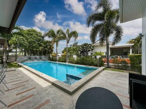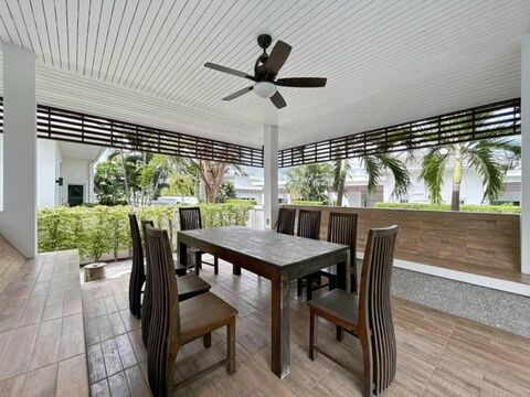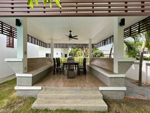 Introducing a lovely 3 bedroom, 2 bathroom villa with a pool at Sivana Gardens, situated on Soi 126, just a quick 10-minute drive to Hua Hin town. This villa offers 317 square meters of built-in space, 108.3 square meters of living area, and a spacious 447.44 square meters of land. Inside, you'll find an open plan living and kitchen areas, a convenient laundry room, a dedicated parking spot, a cozy pavilion, and a 3x10 saltwater pool. Plus, there's a rooftop where you can enjoy stunning mountain and pool views. As part of the Sivana Gardens community, you'll have access to fantastic amenities like a clubhouse, a popular restaurant, and a fitness center. And just across the road, you'll find the newly relocated Mozza Mia Restaurant, managed by the Sivana Team. Don't miss out on this opportunity! Contact us to schedule a viewing today.
