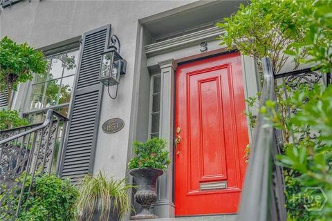 Enjoy the ultimate in downtown Savannah living at this iconic, immaculate, move-in-ready c.1853 home overlooking Monterey Square, which stands apart as one of the most desirable locations in the citys Landmark District. Ideally located steps from Bull Street and Forsyth Park, this newly renovated, impeccably restored urban oasis includes a gorgeous 4 BR/4.5 BA main house, lucrative 2 BR/1 BA garden-level short-term rental and charming carriage house with 1 BR/1 BA studio and garage parking. Enter the signature red front door to discover a peaceful, stylish sanctuary with floor-to-ceiling windows, spectacular views of Monterey Square, original plaster moldings and ceiling medallions, designer lighting, soaring ceilings, hardwood floors and much more. Highlights include an updated chefs kitchen, primary bedroom level, unrivaled city views plus a private brick courtyard with dolphin fountain & more. Walk to Forsyth Park & explore the citys best restaurants, cafes and shops