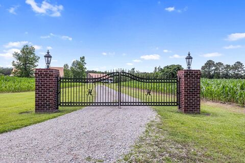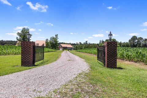 A truly unique getaway, just 29 miles from Wilmington, on a sprawling 72 acres of open land in Pender County. This property boasts three brick homes totaling 8772 square feet of living space, a large workshop, and a private tennis court. The mostly cleared acreage offers ample space for outdoor activities, gatherings, and wildlife viewing. The main residence offers over 4,400 square feet and features two bedrooms, two full baths, and two half baths. A chef's kitchen is a central highlight, with a built-in Sub-Zero refrigerator, a Wolf six-burner oven, a range hood with infrared warming lights, a large island with a built-in four-burner gas cooktop, and two built-in freezer drawers. Schonbek chandeliers illuminate the space, and a spacious eat-in area is topped with a charming tin ceiling. The expansive living room, complete with a pool table, is perfect for gatherings, and the cozy family/media room is ideal for relaxing. The home also includes a three-car garage. Storm shutters and a