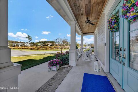 Welcome to a Southern Coastal Luxury home loaded with upgrades!! Located in the premier waterfront community of Helms Port, a family neighborhood with the finest amenities including a spacious clubhouse,a luxurious pool overlooking breathtaking views of the marina and beyond. Enjoy a white sandy beach to launch your kayak or paddle board and then store it afterwards. Here comes the sun, in this light and airy spacious home with 10 ft. ceilings, open floorplan with a beautiful sunroom overlooking an outdoor oasis of fun. Featuring a flagstone patio with a custom stone fireplace, gas grill, TV and outdoor shower makes for memorable family and friend time. The beautifully landscaped yard is fenced in and provides enough space for a future pool. This home is ideal with the primary suite downstairs and 2 bedrooms upstairs with large great room providing space for the children. Then, for guests, there is a 4th bedroom located discreetly over the garage with ensuite bath and separa