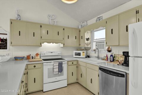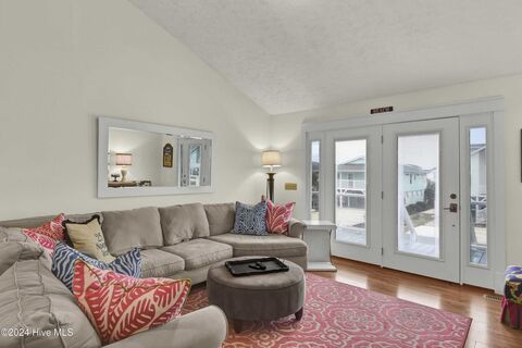 Welcome to 25 Newport Street, a breathtaking coastal retreat perfectly situated on a serene, concrete, canal lot in the heart of Ocean Isle Beach. This home offers direct access to the Intracoastal Waterway, making it a haven for water enthusiasts and those seeking tranquility by the sea. As you arrive, the charming front deck, framed with freshly painted rails, invites you to relax and soak in the ocean breeze. Vibrant, plush seating and cheerful fabrics enhance the outdoor ambiance, setting the tone for endless seaside moments. Step inside and discover a thoughtfully designed home that seamlessly blends coastal elegance with inviting comfort. The interior boasts custom-designed fabrics, beautifully painted kitchen countertops along with cheerful furnishings, embody Southern hospitality. Natural light streams through the glass doors, illuminating the open floor plan and complementing the airy coastal palette. With four tastefully decorated bedrooms and two well-appointed bathrooms, th