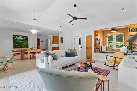 Welcome to your dream beach retreat in the coveted Maccumber Terrace neighborhood. Just minutes from the sand and surf at Wrightsville Beach, and located within the highly sought after Wrightsville Beach school district, this stunning 2023 renovation blends modern luxury with coastal charm. Step inside to a light-filled living space with vaulted ceilings, a custom built-in reading nook, and an airy, open feel that invites relaxation. Polished concrete floors flow seamlessly throughout, complementing the home's clean lines and modern design. The kitchen is a showstopper, featuring sleek, modern appliances, custom White Oak cabinetry, and sophisticated tile and countertops that strike the perfect balance between beauty and functionality. The primary suite offers a spa-like escape, complete with a spacious walk-in shower, beautifully curated tile work, and a warm wood-accented ceiling that brings a touch of organic elegance. Two additional spacious guest bedrooms share a beautifully appoi