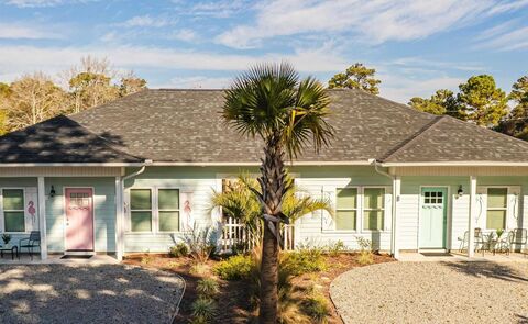 A rare opportunity that does not come on the market often! This fully furnished duplex in Ocean Isle Beach is less than a mile from the beach, located in an X zone, with NO HOA. You can take a golf-cart straight to the island, making it an ideal investment, second home, or a mix of both. Rent out both sides or enjoy one for yourself while generating income from the other. Each side features 2 bedrooms and 1 bath, with charming personality throughout, one unit playfully decorated in a flamingo theme and the other in a whimsical mermaid motif. Both kitchens offer granite countertops and stainless-steel appliances, making them turn-key and rental-ready. Outside, you will find a large backyard perfect for relaxing or entertaining, complete with a shared covered common area, picnic table, and wet bar an inviting space guests will love. This property is adorably decorated, immaculately maintained, and sure to steal hearts the moment anyone enters through the door. A truly special find in one