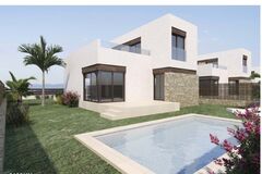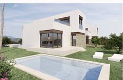 New Build modern townhouses and semi-detached villas with several terraces and solarium, totally fenced, with parking area for vehicles and private swimming pool in Polop.Modern properties with 3 spacious bedrooms with built-in wardrobes (the main one on the ground-floor, with bathroom and dressing room en-suite), 2 spacious bathrooms, large living-dining-room with open kitchen, spacious terraces.Kitchen equipped with base units and silestone worktops, with ceramic hob, oven, extractor hood, fridge, washing machine, dishwasher, and aerothermal heater.First qualities: interior carpentry in wood and white lacquered laminates, exterior carpentry in anthracite grey pvc with double glazing and thermal bridge break, and automatic blinds with aluminium slats, ceramic floors of first quality non-slip, smooth walls, security door with 5 anchor points, large built-in wardrobes. The city of Polop offers an amazing range of options for lovers of the great outdoors surrounded by nature and unparalleled peace.The municipality enjoys a Mediterranean climate with cooler temperatures and cleaner air, located less than 10 kilometres from Benidorm, Altea and their beaches.it stretches from the rivers Guadalest and Algar to the town of Villajoyosa, including the beaches of Albir and Benidorm; inland it borders Callosa and Guadalest.