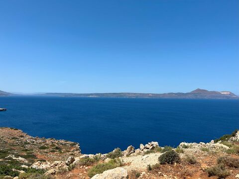 This stunning seafront plot for sale in Chania Crete is set just outside the village of Kokkino Chorio in the reagion of Apokoronas. It covers 8,300 square meters and already has a building permit for a 350-square-meter villa, with a remaining building capacity of 83 square meters. The land is right by the north coast and offers wide, open views of the sea.