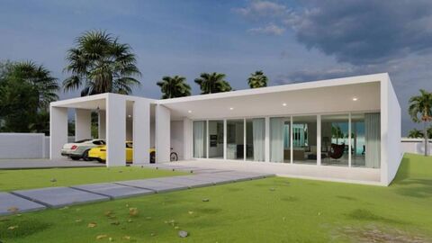 These 2 off plan villas are located on Palm Hills golf course overlooking the 12th Fairway. The ultimate in modern design in a peaceful location the villas feature 4 bedrooms, 5 bathrooms, an open plan living / dining and kitchen area, covered car parking for 2 cars and a top pliot has pool 12x5m pool and bottom plot 14x5m pool. The total plot is 2400 sqm, the top plot is 1150 sqm and the bottom plot 1250 sqm. The starting prices of the villas are 17m for the villa set back from the golf course and 18m for the villa closest to golf course. There is also an options to buy both villa together which is perfect for a family that need two houses or a investment option of 2 rental properties. Modification to the villa design can be made and the buyer can choose their own kitchen design, tile and pool colours. Please contact us for more information.