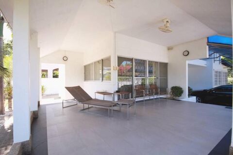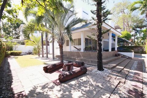 Situated in the heart of Hua Hin city, this location is highly sought after and does not come onto the market often. This 2 story private villa with rooftop is perfect for a Thai family from Bangkok or a family with kids or even an investor who wishes to find a city center property within walking distance to the beach to rent out on a short term basis. It consists of a land size of 480 square meters, and a living area of well over 350 square meters if you include the rooftop area. There is one car port space, plus more than enough space to build a 3.5 x 10m swimming pool in the garden. The ground floor consists of a dedicated entrance foyer, with a fitness room that can serve as a ground floor bedroom if required, plus a fully fitted and equipped European kitchen and laundry area. Also on the ground floor is a reading lounge and a television room, and of course a dining area next to the kitchen. There is also an indoor Zen garden with skylight. The second floor consists of the three bedrooms, two of which are en suite. The master bedroom has a large, walk-in wardrobe. Walking up the spiral staircase leads you to the third floor rooftop section that has a covered dining area for entertainment. This is a great home in a sought after, city center location. Contact us today for a private viewing.