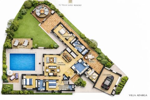Nos complace presentar esta excepcional villa modelo Adarga, ubicada en el prestigioso El Valle Golf Resort, una de las comunidades de golf mas exclusivas y seguras de la region de Murcia.