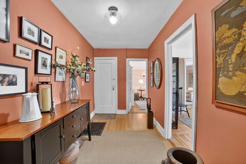 Welcome to this rare gem, offering convenience & style in this top-floor, corner apartment that's a perfect sanctuary for 1st-time buyers, city commuters, or those seeking to simplify their lifestyle without compromising luxury. Immerse yourself in tree-top views & the vibrant energy of White Plains from this beautifully renovated residence that shines with modern elegance & classic charm. Step into a spacious sun-drenched layout, where high ceilings & gleaming hardwood floors flow throughout. The large entry foyer invites you into a grand living space, complete with French doors that open to an elegant formal dining room an entertainer's dream. The updated kitchen boasts custom cabinetry, SS appliances, & lustrous quartz counters. Retreat to the wonderful primary bedroom featuring an impressive wall of closets or the cozy guest room, each offering a peaceful escape. This pet-friendly, prewar building exudes character with its delightful architectural details. Convenience is at your