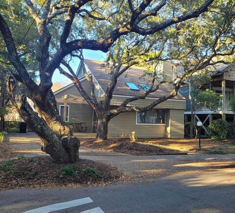 Very well-maintained bungalow on South harbor Island and perfectly positioned on the abundantly quaint and charming Live Oak Drive. The home offers picture perfect curb appeal, framed by mature live oak trees that lead to an inviting rocking chair front porch. Upon entering the home, the main room is filled with light and tall ceilings in a large open room and wood burning fireplace. The kitchen is in the back of the home offering plenty of room for entertaining with large counter tops, tongue and groove vaulted ceilings and easy access to the screened porch and private back yard. The laundry room is off the kitchen that is a large and functional workspace for a home of this square footage. The stairs to the primary bedroom are off of the kitchen for the utmost privacy. There is a walk in closet, a large primary bathroom and a private deck for enjoying coffee and cocktails. There are two zones, for HVAC, one system is 2 years old and another is 2025. The siding is cedar, the windows ar