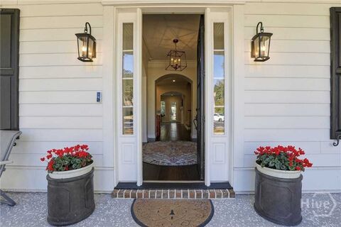 Situated on nearly half an acre in the desirable, gated community of Dutch Island, this 5 bed, 4.5 bath home offers space, functionality, and scenic views. A bright, open floor plan welcomes you with a front flex space ideal for a home office or sitting area. The formal dining room flows seamlessly into the kitchen, featuring a built-in coffee and beverage station conveniently positioned between the rooms. The kitchen offers an island with bar seating and overlooks the family room, creating an ideal layout for everyday living and gatherings. The family room features built-in bookcases, ample storage, and a fireplace. A sunny breakfast nook provides additional dining space. The primary suite is located on the main floor and includes a spacious en-suite bath with two vanities, garden tub, and separate shower. Additional highlights include media room with wet bar, 2 laundry rooms, a two-car garage plus a golf cart garage, and a screened back porch overlooking the yard, built in fire pit a