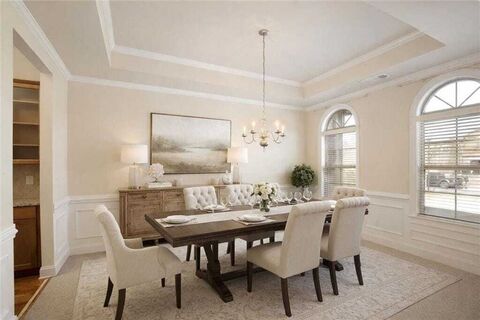 Welcome to 764 Morganton Drive, a thoughtfully cared-for five bedroom, four and a half bath home offering a flexible floor plan, primary bedroom on the main level, and a walk-out daylight finished terrace level in a convenient Johns Creek location. A two-story foyer welcomes you, flanked by a formal dining room and a versatile living room or home office.The main level features a primary suite, an additional bedroom with full bath, and a separate half bath, providing excellent main-level living options. A vaulted great room flows into the eat-in kitchen with a butlers pantry, offering functional space for everyday living and entertaining.Upstairs includes two generously sized bedrooms, each with its own vanity, connected by a shared bath, along with a loft-style living area ideal for a second den or flex space.The walk-out daylight finished terrace level offers exceptional versatility with a bedroom, full bath, living area, and abundant additional space suitable for a media room, th