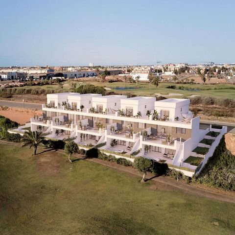 Newly built semi-detached and detached villas in La Serena Golf-Los AlcazaresDiscover your dream home in these amazing semi-detached and detached villas located on the front line of the La Serena golf course in Los Alcazares, where modern living meets breathtaking golf views. These meticulously designed three bedroom, 4-bathroom homes are perfect for families seeking luxury, comfort and a touch of Mediterranean charm.Bedrooms and Bathrooms:Three spacious bedrooms, designed with comfort in mind.Each bedroom has built-in wardrobes, ensuring ample storage space.Four contemporary bathrooms with high-quality fittings and finishes.A very cosy open-plan kitchen and living room, ideal for entertaining and family gatherings.Spacious living room with large windows that bathe the space in natural light and offer amazing views of the golf course.A generous basement that can be used as a recreation area, home gym, or additional storage.Dedicated parking space for secure parking and convenience.Private swimming pool surrounded by a lovely garden, perfect for relaxing and enjoying the sun.Large terrace for al fresco dining and entertaining, with picturesque views of the golf course.Air conditioning and heating installed for year-round comfort.Proximity to local amenities, including shops, restaurants and, of course, world-class golf courses.Los Alcazares is known for its beautiful beaches, vibrant community, and a wealth of outdoor activities. The location offers a perfect balance of tranquillity and accessibility, making it a perfect place for both tourists and year-round residents.This property is a perfect blend of modern architecture, comfort and leisure. Don't miss the opportunity to own a piece of paradise in Los Alcazares!799