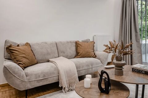 - Spacious modern living: Our 2-bedroom apartment in Athens offers a generous living space with premium amenities like a Marshall speaker system and Nespresso machine to enhance your comfort.