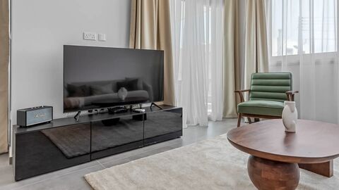 - Spacious modern living: Our 2-bedroom apartment in Limassol offers a generous living space with premium amenities like a Marshall speaker system and Nespresso machine to enhance your comfort.