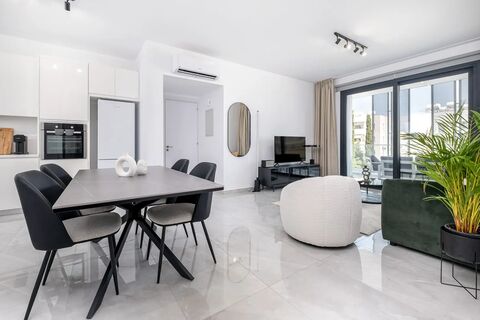 - Spacious modern living: Our 2-bedroom apartment in Paphos offers a generous living space with premium amenities like a Marshall speaker system and Nespresso machine to enhance your comfort.