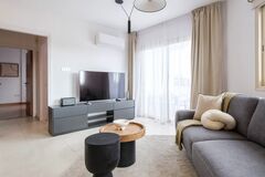 - Spacious modern living: Our 2-bedroom apartment in Limassol offers a generous living space with premium amenities like a Marshall speaker system and Nespresso machine to enhance your comfort.