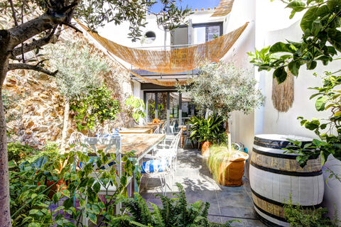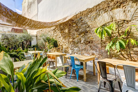 This beautifully renovated townhouse is situated in the charming historic quarter of Estepona and offers a harmonious blend of traditional character and modern comfort. The property is currently used as a vibrant restaurant and art gallery with a two-bedroom apartment upstairs, making it a highly versatile space with exceptional potential for various commercial or residential purposes.The ground floor welcomes you with an open-plan layout designed for both socializing and everyday living. A fully equipped kitchen encourages culinary creativity and is complemented by an elegant bar area that enhances the rooms sophistication. A generous inner patio provides an inviting setting for outdoor dining or peaceful moments in a tranquil atmosphere.From the patio, a staircase leads up to the upper floor where a private, modern apartment awaits. The residence features a stylish kitchen, a bright and spacious living room, and two well-proportioned bedrooms. The master bedroom has an en-suite bathroom, while a second bathroom serves the rest of the home. Each bedroom has its own balcony with picturesque views of the surrounding old town streets.An additional property, located at the far end of the patio, is available for separate purchase. With flexible layout options, it can be converted into an extra bedroom or a fully independent apartment with its own rooftop terrace.This unique townhouse captures the essence of modern living in a historic setting. Whether maintained as a commercial enterprise or converted into a private residence, it offers a rare opportunity to create a unique lifestyle or business in one of Esteponas most sought-after areas.