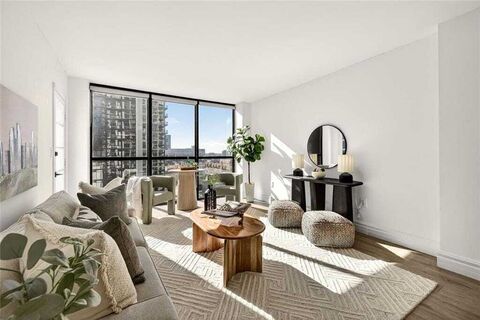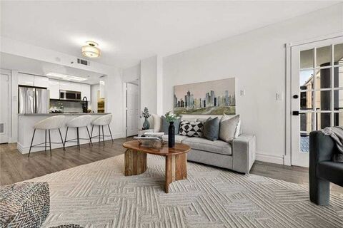 Back to Market at no Fault to Seller Tucked just behind the High Museum of Art, this rare, corner two-bedroom, two-bath condo, floating high above the city on the 24th floor, is the perfect balance of quiet, affordable luxury you've been waiting to find! Dual east- and west-facing views, this light-filled unit boasts an updated kitchen with quartz countertops, stainless steel appliances, and modern - streamlined cabinetry, complemented by the water-resistant hardwood style laminate flooring throughout. BOTH bathrooms have been entirely renovated with walk-in showers, bespoke tile and floating vanities that deliver a clean, elevated, spa-inspired experience. Oversized primary bedroom with King Sized bed and a Massive walk-in custom closet for every outfit you could dream of wearing, as well as a sliding door directly out to the stunning balcony - perfect for a morning cup of coffee or evening cocktail! Very well appointed secondary bedroom with incredible sun soaked light and view