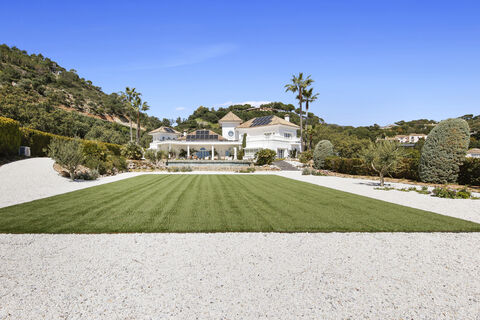 This exceptional villa embodies Mediterranean luxury, set on a spacious elevated plot that offers breathtaking sea views from its main levels. Located in La ZagaletaSpains most exclusive residential enclave and one of Europes most prestigious addressesthis residence boasts a sprawling, predominantly flat plot with a beautifully manicured garden surrounding an expansive pool area, creating a serene and elegant outdoor retreat that adds to the luxurious experience of this home.inside, the grand entrance hall welcomes you with soaring double-height ceilings, immediately showcasing the villas refined elegance. This space seamlessly connects to all main living areas. To the right, the expansive living room features floor-to-ceiling glass doors that open to a terrace, framing stunning sea views. The living room flows effortlessly into the dining area, both enhanced by lofty ceilings that amplify the sense of space and light.Adjacent to the dining area, the kitchen is both stylish and functional, complete with a charming breakfast nook. A hallway from the kitchen leads to the service quarters and an enclosed three-car garage.On the opposite wing, a sophisticated home office leads into a spacious games room, both opening to the garden and offering the same breathtaking sea views found throughout the home.This level also hosts three generously sized en-suite guest bedrooms, each with direct garden access and private outdoor sitting areas.Upstairs, the magnificent primary suite includes a spacious dressing room and a lavish bathroom. A private terrace extends from the suite, offering panoramic views of the Benahavs mountains and the Mediterranean. A well-appointed en-suite guest bedroom with its own balcony completes this floor.Designed to embrace the year-round mild climate of the Costa del Sol, the villas outdoor spaces are truly exceptional. A landscaped pathway winds around the property, lined with mature trees of various species. The centerpiece is a stunning pool reminiscent of a natural pond. There are several covered and open spaces from where to enjoy the outdoors. The grounds extend forward, ensuring privacy and tranquility, as generous distances separate neighboring homes in La Zagaleta.