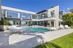 Located in the prestigious La Alquera neighborhood of Benahavis, this newly built contemporary villa sits on a generous 1,195-square-meter plot. it offers 307 square meters of luxurious living space, complemented by 90 square meters of terrace area. With an enviable southeast orientation, the villa presents breathtaking panoramic views of the Mediterranean Sea, the coastline, the majestic La Concha mountain, and the lush fairways of La Alquera Golf Course.The villa boasts five spacious en-suite bedrooms, each designed with elegance and modern comfort. Upon entering the main floor, you are greeted by a grand entrance hallway leading to a sophisticated living area with high ceilings and a cozy fireplace. The dining area, featuring a fireplace, seamlessly integrates with the fully equipped kitchen, including high-end carpentry and Miele and Bora appliances. This floor further offers two guest bedrooms, a guest toilet, a laundry room, and direct access to the terrace, a landscaped garden, and a stunning 56-square-meter swimming pool.Upstairs, the master bedroom is a true retreat, featuring a generous walk-in dressing area and a separate room that can be used as an office, gym, or additional bedroom. The first floor also includes two additional en-suite bedrooms, all with access to terraces offering uninterrupted views of the surrounding beauty. One of the terraces leads to the roof, where solar panels are installed, contributing to the villa's energy efficiency.Additional standout features include an Airzone climate control system for individual room temperature regulation, underfloor heating throughout, a home automation system, and high-quality furnitureall included in the price.This exceptional property offers a tranquil and private living experience while being conveniently located near top golf courses, shops, and international schools and just a short drive from the luxury amenities of Puerto Bans. Mlaga-Costa del Sol Airport is a mere 40 minutes away.