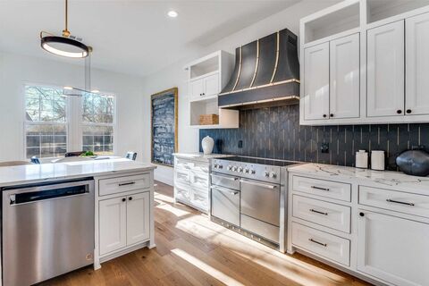 Stunning 3,790 square foot home built in 2023, tucked away on a private and peaceful cul-de-sac in Greenway Terrace, just minutes from shopping, dining, and Love Field. This beautifully designed residence features a spacious open floor plan ideal for everyday living, working from home, and entertaining. With three living areas, two dining areas, a dedicated office, four bedrooms, and 3.5 baths, the layout offers exceptional flexibility for todays lifestyle. A guest room suite is located conveniently on the primary floor. Rich wood floors and a custom wrought-iron staircase railing create a warm and inviting atmosphere throughout.The first-floor living area showcases a vaulted ceiling accented by an eye-catching chandelier, while the well-appointed kitchen is perfect for the home chef and hosting guests. A private office on the main level provides a quiet space for working from home.Upstairs, youll find both a game room and a versatile flex space ideal for a second office,