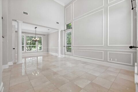 Executive living in Gated Hackberry Creek Golf Community. Take in the expansive Golf-Water views from your dining, kitchen, living, primary bedroom and stone terrace. Downstairs is highlighted by an updated Kitchen open to a large living room, both overlooking the #2 green of the golf course. Formal living and formal dining rooms are complemented by an additional eat-in breakfast room off the kitchen. Downstairs bedroom can also be used as an office with custom built-ins. Upstairs features a large primary bedroom with a patio overlooking the golf course. Third living area upstairs includes built-ins, adjacent to the two upstairs secondary bedrooms with a shared bath. Large game room over the garage could be used as a second primary bedroom, as there is a full bath and closet space. Versatile floorplan could allow for three bedrooms, an office and four living areas or five bedrooms and three living rooms - all kinds of options! Two New HVAC Systems in 2024, Tankless Water Heater, Roof a