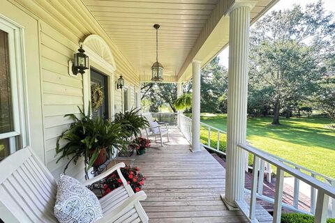 Immaculate move in ready 2 story beauty with 4 spacious BDRMs and 2 full and one half baths. This stunning property offers state of the art updates throughout including gorgeous top of the line HW floors and a complete like new kitchen featuring a lg quartz island, gas cooktop, dbl. ovens, DW and disposal. Downstairs also boasts a cozy living room with an (electric start) gas log brick FP, built in entertainment center, formal DR and separate office or music room for work or play. Spacious split master suite features HW flooring and like new master bath w/walk in closet, creating a true retreat. Upstairs you'll find 3 addn. bedrooms, oversized bathroom and 2 convenient floored attic spaces for extra stg. Step outside to your personal oasis, luscious St Augustine yard, greenhouse with raised garden beds, hay barn, fenced dog run, sprinkler system. The property is shaded by mature pecan trees and equipped with a generator for added peace of mind. THIS home truly has it all, luxury, cha