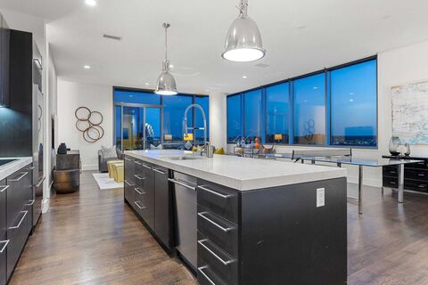 Experience elevated urban living in this 11th-floor residence at The House Condos, the iconic Starck & Yoo designed high-rise in the heart of Victory Park. Floor-to-ceiling windows frame sweeping views of Downtown Dallas, Reunion Tower, and the Margaret Hunt Hill Bridge, creating a striking skyline backdrop by day and night.The thoughtfully designed layout features two living areas, with the second offering flexibility as a den, study, or office. The interior showcases Sub-Zero, Wolf, and Asko appliances, white oak hardwood floors, and elegant Crema Marfil marble countertops, backsplash, and bath. Refined details include 10-foot ceilings, museum-finish walls, and motorized window shades, complemented by a custom bedroom closet offering exceptional storage. One dedicated parking space.Residents enjoy resort-style amenities including a 130-foot saline infinity pool, spa, private cabanas, two grilling areas, dog park, owners lounge, conference room, guest suite, and fully equippe