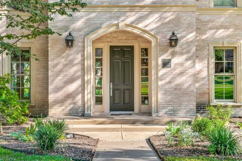 Welcome to Plum Creek, one of the most desirable neighborhoods in Midlothian. This beautiful custom home on .75 acres surrounded by trees will not disappoint! Front yard features mature landscaping with Crepe Myrtles and low maintenance flower beds. Colonial-inspired style, featuring natural limestone arch surrounds and sills, flanking gas lantern-style sconces, lend to that classic look. Wood framed custom divided light pane windows provide energy efficiently and beauty. Enter grand foyer with stunning wood staircase and hardwood floors throughout. Living room features gas starter fireplace, French doors proving views of the natural beauty of this property. Spacious dining area opens to kitchen and another set of French doors leading to covered patio. The kitchen has plenty of storage, gas cooktop and island with breakfast bar. Library with wood flooring and built in shelving is magnificent. Huge primary bedroom with separate vanities, garden tub and separate shower. Secondary bedroom