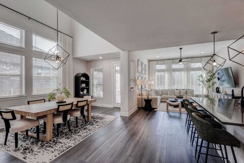 Welcome to this barely lived-in David Weekley home in the highly sought-after Sandbrock Ranch community! Offering over 3,000 square feet of beautifully maintained open-concept living, this residence features a flexible floorplan with two bedrooms upstairs and two downstairs. High ceilings, custom window coverings, and quality upgrades throughout create a bright and inviting atmosphere. With Smart Home features, you have what you need at your fingertips! The exterior is equally impressive with tasteful lighting, manicured landscaping, a two-car garage, and a spacious backyard complete with a covered patio perfect for outdoor entertaining! Start planning your back yard oasis!Sandbrock Ranch provides exceptional amenities including a brand-new elementary school, miles of scenic trails, stocked fishing lakes, parks, playgrounds, and a sparkling pool at the Carriage House amenity center. Residents also enjoy a fitness center, splash pad, and outdoor amphitheater with activities for all