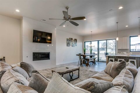 Morning light moves softly through the windows, brushing across open living spaces and settling into calm corners. From the moment you step inside, the home feels composed yet effortlesseach level revealing its own rhythm of comfort, connection, and quiet retreat. Tucked in the heart of Dallas Bishop Arts District, this townhome embodies the art of modern living. The entry level begins with a rare two-car garage and a welcoming transition from street to sanctuary. Upstairs, the main living floor unfolds with natural light and an intuitive flow between kitchen, dining, and living areas. Thoughtful design choicescustom cabinetry, generous surfaces, and premium appliancesmake every gathering, from weekday dinners to spontaneous get-togethers, feel easy and unforced. A private room on this level adds flexibility for guests, work, or creative use. The next level is designed for rest and reflection. The primary suite opens onto its own balcony, offering a peaceful place to pause above th