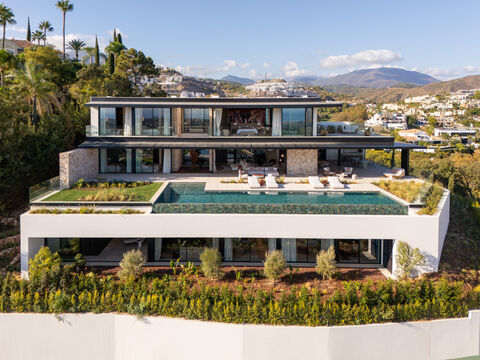Set atop the exclusive gated community of El Herrojo Alto, Casa Orquidea enjoys a privileged position surrounded by lush greenery and sweeping panoramic views. The area is renowned for its privacy, security, and proximity to some of Marbellas finest golf courses and amenities. The winding, tree-lined roads leading up to the property create a sense of tranquility and anticipation before arriving at this extraordinary home.Upon arrival, Casa Orquidea impresses immediately with its elegant contemporary design complemented by natural materials that blend seamlessly with the surrounding landscape. The grand entrance welcomes you with abundant natural light and breathtaking views through expansive floor-to-ceiling windows. The main living area features a stylish lounge with a fireplace that opens into a spacious dining room and state-of-the-art kitchen, which connects to an outdoor cooking areaperfect for entertaining. This level also includes two beautifully appointed guest suites.Upstairs, the first floor is dedicated to three en-suite bedrooms, including an exceptional master suite of over 70 m. The master bedroom boasts a luxurious walk-in closet, a stunning bathroom, and a private terrace with a jacuzzi from which to take in the serene views. The lower level offers nearly 800 m of additional living space, featuring multiple lounges for relaxation and entertainment, a playroom, cinema room, gym, and an indoor spa complete with a pool and jacuzzi. There is also a home office, an impressive garage for eight cars, and three additional en-suite bedroomsone with a private entrance and kitchenette, ideal for staff or guests.Casa Orquidea sits within the municipality of Benahavs, one of the most sought-after areas on the Costa del Sol, known for its beautiful mountain scenery, prestigious gated communities, and world-class restaurants. Just a short drive from Marbella, Puerto Bans, and the beaches, Benahavs offers a perfect balance of natural beauty, security, and accessibility. Casa Orquidea is a true masterpiecea home that combines sophistication, comfort, and breathtaking surroundings in one of southern Spains most desirable settings.