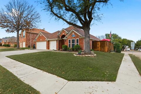 This beautifully updated home offers a perfect balance of comfort, convenience, and modern style, located in Flower Mounds highly desirable Sherwood Estates.This stunning 4-bedroom, 2-bath home features a desirable 3-car garage, is zoned to exemplary schools, and is just minutes from scenic parks and walking trails. The kitchen is both stylish and functional, featuring modern finishes and an inviting layout. The open living area features a cozy brick fireplace, neutral finishes, and a layout ideal for everyday living or entertaining. The home features two distinct patio spaces, one off the living room that creates seamless indoor-outdoor flow, ideal for relaxing, entertaining, or enjoying fresh air, and a second patio just off the kitchen, perfect for morning coffee or casual outdoor dining.Retreat to your spa oasis primary bath, featuring a spacious glass-enclosed walk-in shower, with a soaking tub and a customized closet. Thoughtful updates abound; this exceptional home is a true