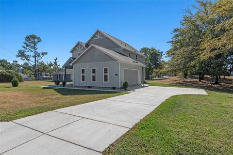 Enjoy the perks of lake living with community boat ramp access from this modern new construction 4-bedroom, 2.5-bath home in Arnold Hills. Set on a spacious .43-acre double lot, the property features drought-resistant rock landscaping and extended concrete walkways surrounding the home. Inside, the open layout showcases tall ceilings, large windows, and durable wood-look luxury vinyl plank flooring throughout the main areas. The kitchen includes granite countertops, stainless steel appliances (refrigerator included), a large island with storage, and a walk-in pantry with custom shelving.The private primary suite on the main level offers serene views of the yard and mature trees, a spa-like bath with dual vanities, and a walk-in tile shower with a glass door. Each bedroom is equipped with a California Closet system for organization and efficiency. The insulated 480-sq-ft garage offers flexibility for use as a workshop, gym, or potential future living space. Additional peace of mind