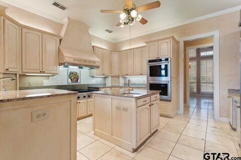 Rare opportunity to own one of only 12 homes in gated Winsford at Hollytree with direct views of the lakes and Hollytree golf course. With multiple living areas and the option for either one or two additional bedrooms this 3 bedroom 4 1/2 bath home is a great fit for a variety of lifestyles. The large primary suite with sitting area looks out to the beautiful views and has direct access to the pool and hot tub. Large primary bath with separate vanities, separate toilets, one with a bidet and his and hers closets have direct access to the utility room. Upstairs bedrooms both have golf course views and access to a large balcony, jack and jill bath and another living area with built-in desk and cabinets. Updates include new roof, gutters and downspouts August, 2025, new 5 ton exterior HVAC unit August, 2025 and new Kitchen Aid double ovens and built-in refrigerator. Don't miss your opportunity to own in one of the most beautiful subdivisions in Tyler, call for your private showing today!