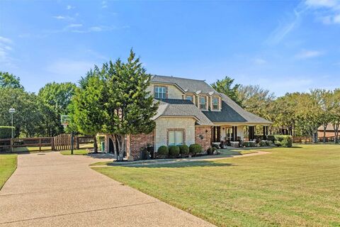 Meticulously maintained two story on 1.85 acres backs up to a creek. Large double door entry with covered wrap around porch. Entry features a beautiful curved staircase with wrought iron balusters. Bright and open floor plan with 10 foot ceilings and 8 foot doors, crown moldings, hand scraped hardwood floors on main floor. Study, Formal dining and living area with fireplace and open to spacious kitchen. Kitchen features 42 inch cabinets, granite counters. Pot filler for stove top and large island with built in microwave. Stainless appliances including top tier built in commercial grade refrigerator and commercial grade 6 burner gas range with built in skillet and double oven. Primary bedroom with fireplace and large walk in closet on main floor. Primary bath has marble tile with a walk-in custom shower system and free standing pedestal bathtub. Marble and granite finishes in all bathrooms and kitchen. Upper floor includes three large bedrooms with walk in closets, two fu