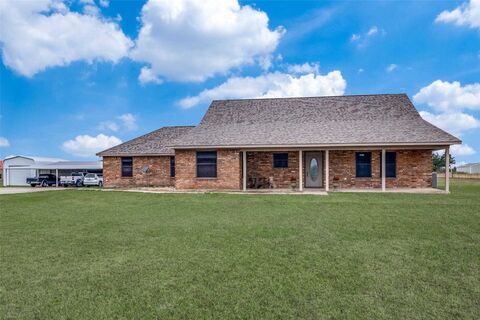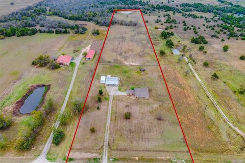This property features 12.5 acres of land with trees and a well-maintained and move-in ready home located in Lone Oak ISD. Property is fenced and cross fenced, private gravel drive with solar powered gate, a large pond with a dock, and the catfish are biting! The 50'x30' workshop has electricity, water, and a small living or office area complete with AC, kitchen, and bathroom with shower. Attached to the workshop is a carport that parks 5, and just next to it, a 29'x19' storage building, with a feed shed behind it as well. This one-story home features a split-bedroom floor plan, providing privacy for the primary bedroom and ensuite bath. The kitchen has tons of counter space, a breakfast bar and is open to the spacious family room and dining room. This one is a true gem for anyone seeking a private escape with endless potential!